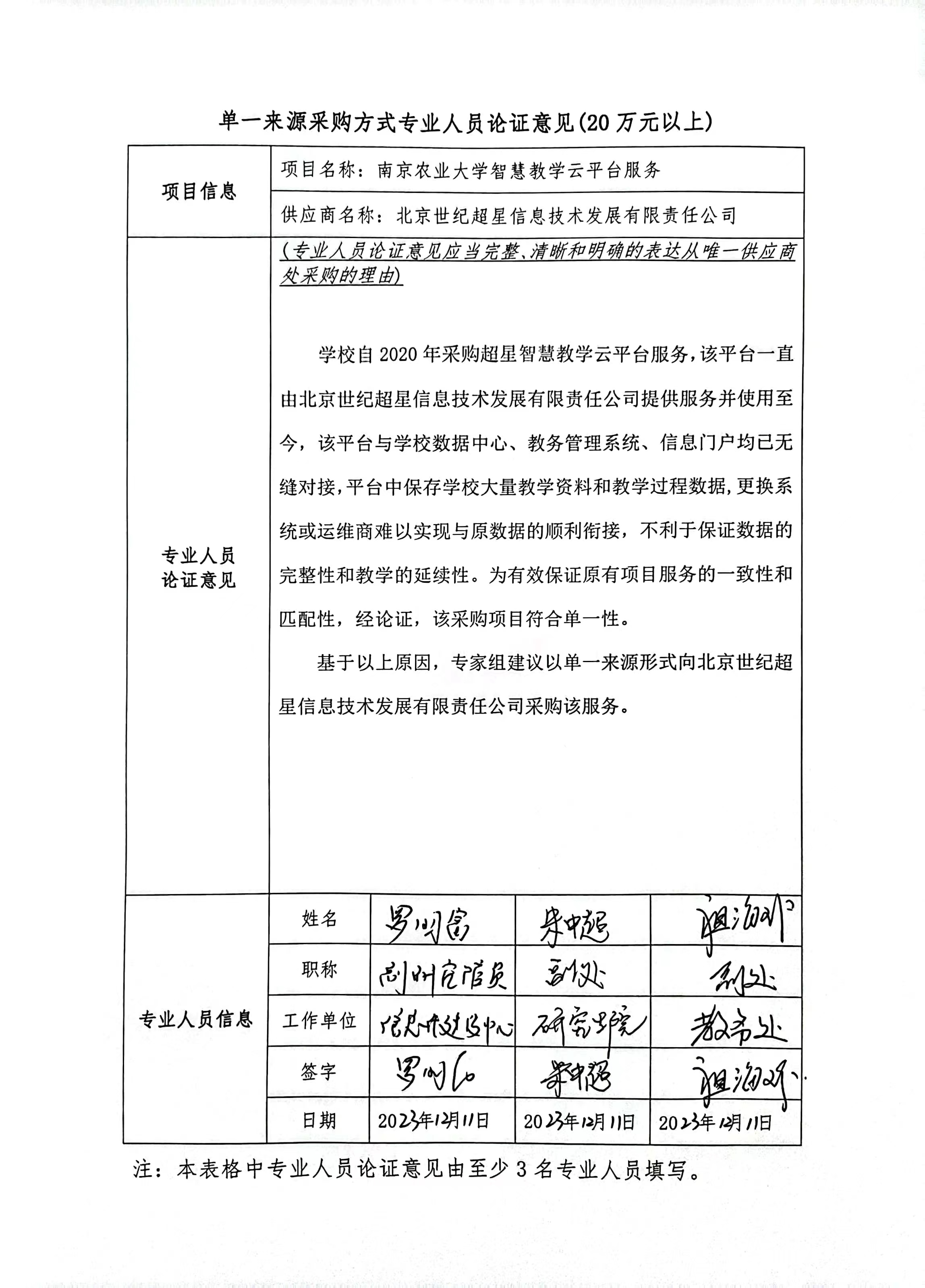 南京农业大学自2020年采购超星智慧教学云平台服务,该平台一直由北京世纪超星信息技术发展有限责任公司提供服务并使用至今。该平台与学校数据中心、教务管理系统、信息门户均已对接,平台中保存学校大量教学资料和教学过程数据,更换系统难以实现与原数据的顺利衔接,不利已保证数据的完整性和教学的延续性。综上原因,拟采用校内单一来源采购方式进行采购。
